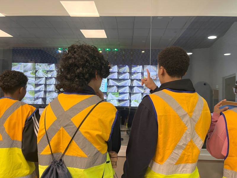 Durante a visita, houve apresentação e bate papo com profissionais da Tamoios. A engenheira Débora Rodrigues e o técnico em Segurança do Trabalho Rodrigo Mendonça compartilharam suas experiências e atividades profissionais. O grupo também esteve no Centro de Controle Operacional e no túnel de segurança do km 65. Os alunos estiveram acompanhados de Mari Machado e Pedro Corat.